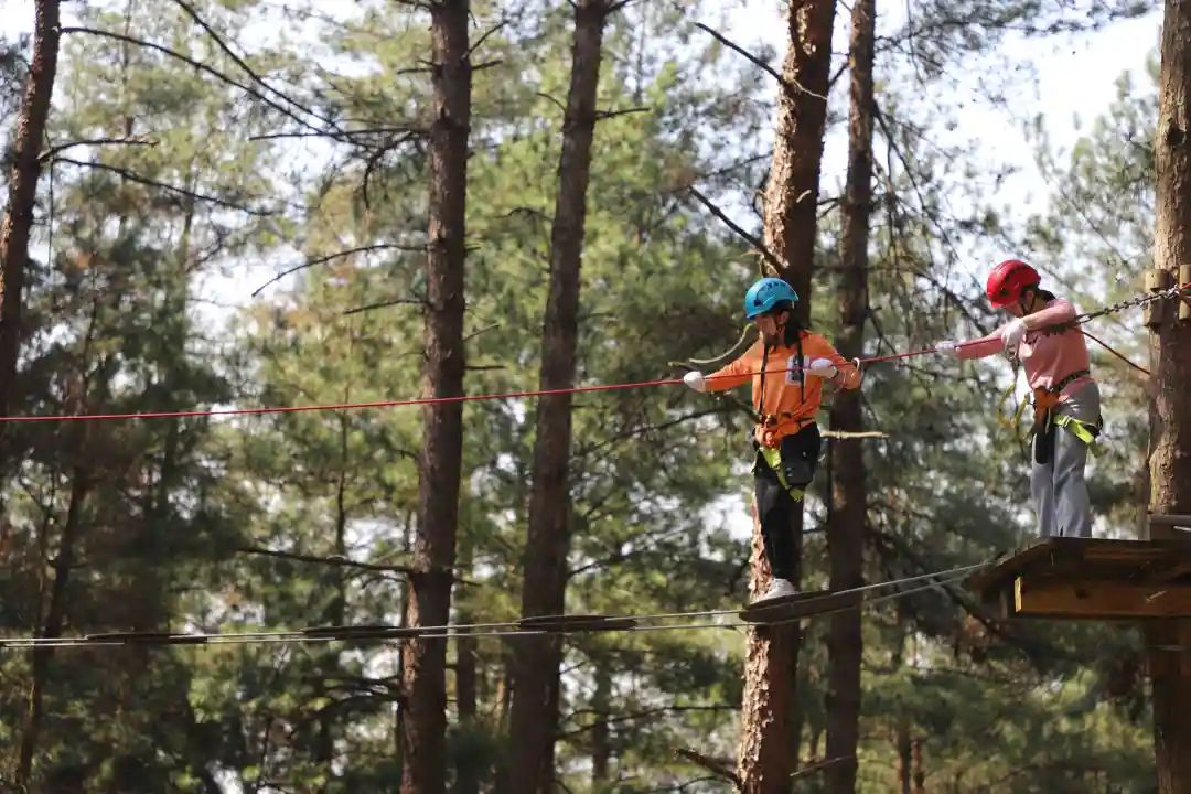從公司出發(fā)到達龍里水鄉(xiāng)飛躍叢林活動現(xiàn)場,在教練的帶領下,大家體驗了雜技踢、滑冰橋、圓碟步、飛毯、松弛索等項目。