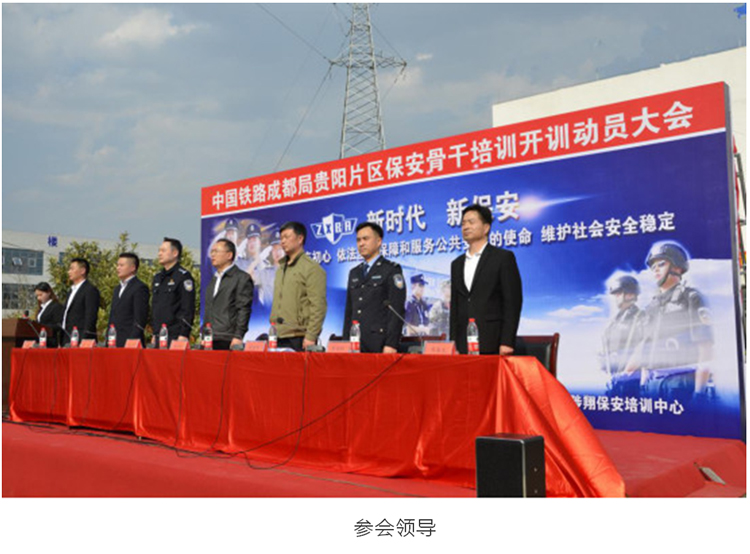 參會(huì)領(lǐng)導(dǎo)也分別對(duì)此次培訓(xùn)提要求、作指示。貴州省鐵路護(hù)路辦周玉春主任:鐵路成都局集團(tuán)公司非常重視鐵路安保工作,今年在營運(yùn)成本居高不下的情況下還提高了保安員工資福利待遇,希望參訓(xùn)保安員們要提高思想認(rèn)識(shí),加強(qiáng)學(xué)習(xí),珍惜機(jī)會(huì),不斷提升業(yè)務(wù)水平,維護(hù)好鐵路公共安全,在工作中履職盡責(zé),擔(dān)當(dāng)有為。貴州省公安廳治安總隊(duì)二處楊春暉處長:從近幾年我國公共安全事件案例,尤其是公眾場(chǎng)所治安、暴力恐怖襲擊等方面深入淺出地分析了當(dāng)前公共安保工作的形勢(shì)。指出鐵路保安作為專業(yè)化的鐵路治安防范組織和公安機(jī)關(guān)的一支重要輔助力量,在保障鐵路安全、維護(hù)治安秩序、預(yù)防和制止違法犯罪活動(dòng)、樹立中國鐵路形象等方面發(fā)揮了非常重要的作用。楊處要求參訓(xùn)的保安隊(duì)員們?cè)谂嘤?xùn)過程中要尊重教員,遵守培訓(xùn)中心的管理規(guī)定,克服各種困難,積極認(rèn)真搞好培訓(xùn),學(xué)精應(yīng)知應(yīng)會(huì)知識(shí),練就過硬專業(yè)技能,在今后的工作中能學(xué)以致用。貴陽鐵路公安處保安支隊(duì)胡宏明副支隊(duì)長:首先肯定了貴州陟翔保安培訓(xùn)中心的辦學(xué)能力,對(duì)參訓(xùn)的保安員精神振作、姿態(tài)端正、作風(fēng)嚴(yán)謹(jǐn)、紀(jì)律嚴(yán)明提出表揚(yáng),要求各位參訓(xùn)人員要認(rèn)清當(dāng)前鐵路安保工作形勢(shì),端正學(xué)習(xí)態(tài)度,珍惜此次培訓(xùn)機(jī)會(huì),自覺遵章守紀(jì),克服各種困難,扎實(shí)練好本領(lǐng),力爭(zhēng)取得好的培訓(xùn)效果。