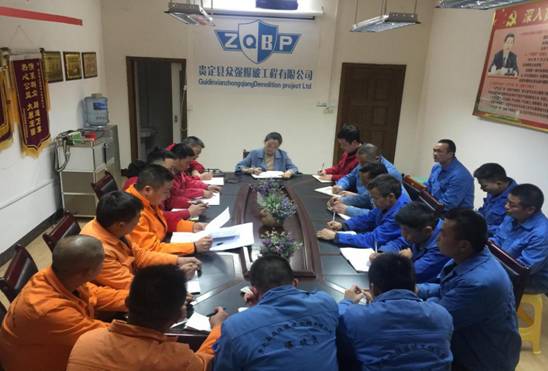 貴定縣眾強爆破工程有限公司張小慶總經(jīng)理在會議上對“江蘇響水爆炸事故”案例進行剖析:針對相關(guān)部門提出的十三條整改意見,該企業(yè)置之不理,導(dǎo)致事故的發(fā)生,歸根于安全責(zé)任不落實,安全職責(zé)不清晰,安全管理工作不到位,思想麻痹大意,安全意識、法律意識淡薄造成的。張總要求全體員工時刻將“安全”二字銘記于心,不忽視任何微小的隱患,嚴(yán)格落實安全生產(chǎn)責(zé)任和措施,有效防范各類安全事故發(fā)生,切實保障各項工作順利進行。分管安全副總彭林希望大家引以為戒,警鐘長鳴,切實把安全落到實處,在工作中發(fā)現(xiàn)安全隱患及時匯報,及時整改。工程車、民爆物品運輸車輛定期檢查維護,必須保證行車安全。施工現(xiàn)場相互提醒,互相監(jiān)督,從點點滴滴抓起,時刻牢記“安全”二字,高高興興上班,平平安安回家!