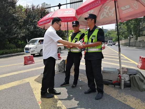 8月16日,總公司副總經(jīng)理兼保安公司總經(jīng)理陳春生、總公司副總經(jīng)理兼保安公司工會(huì)主席邱敏以及保安公司各區(qū)域經(jīng)理分別來到公司駐貴陽(yáng)龍洞堡機(jī)場(chǎng)、省人民政府、高鐵北站、車輛段、客運(yùn)段、動(dòng)車所、臺(tái)灣大廈、中環(huán)路等勤務(wù)點(diǎn)慰問一線保安員。