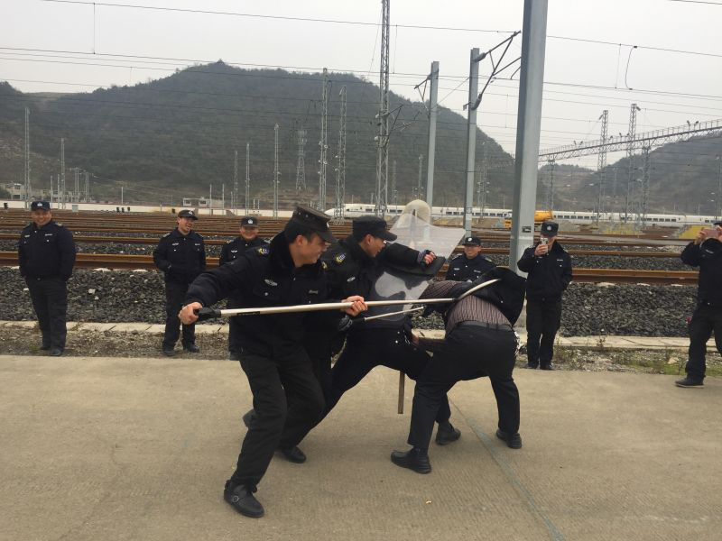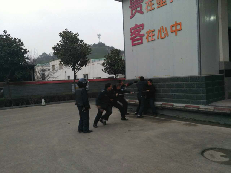 三、按照客戶單位《反恐怖主義法》宣傳教育活動周安排,于2016年12月21日14:00-16:00,由駐車輛段動車所保安隊開展反恐處突實作演練,共計26名駐車輛段動車所保安隊隊員參加演練,于2016年12月22日9:00-10:00,由駐車輛段、客運段保安隊開展反恐處突實作演練,共計12名駐車輛段、客運段保安隊隊員參加演練。本次演練以反恐怖主義法教育、反恐器材使用、反恐團隊配合和應對刀斧砍殺實作演練為主,有效提高了職工反恐應急處置能力。