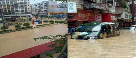 7月14日晚,松桃縣普降特大暴雨,由于強度高、持續(xù)時間長,引發(fā)有大水記錄以來的最大洪災(zāi)。凌晨5時許,最高洪峰經(jīng)過松桃縣城,導(dǎo)致縣城部分街道被淹,多條道路中斷,停水停電。