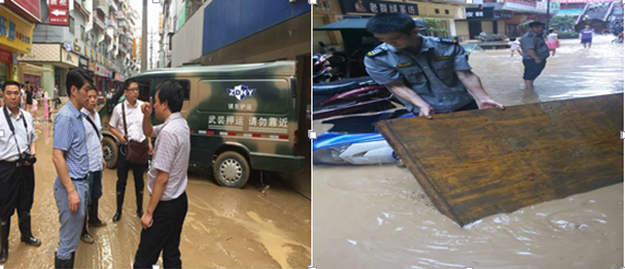 銅仁本部負責(zé)人陳葉接到電話報告后,第一時間率領(lǐng)應(yīng)急人員趕赴一線,與市公安局治安支隊吳支隊長、市工行吳行長一同到現(xiàn)場指揮抗洪救災(zāi)工作。