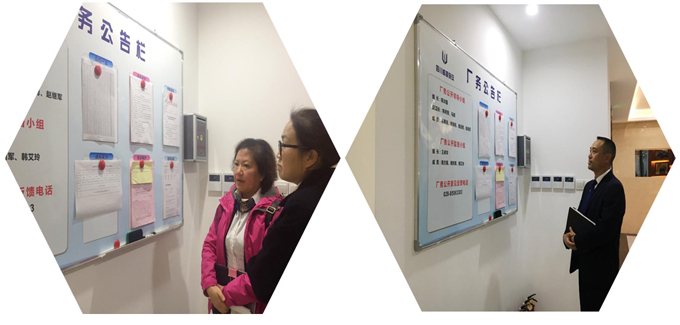 12月4日下午15時30分,在四川威振保安服務(wù)有限公司董事長孫斌、總經(jīng)理蔡果良及各負(fù)責(zé)人的引領(lǐng)下,我司一行參觀了威振公司的所有辦公區(qū)。從公共辦公區(qū)到獨(dú)立的辦公室,再到休息小陽臺;從宣傳欄到工會制度,再到文化墻,處處展現(xiàn)出該公司規(guī)范的管理與深厚的企業(yè)文化。